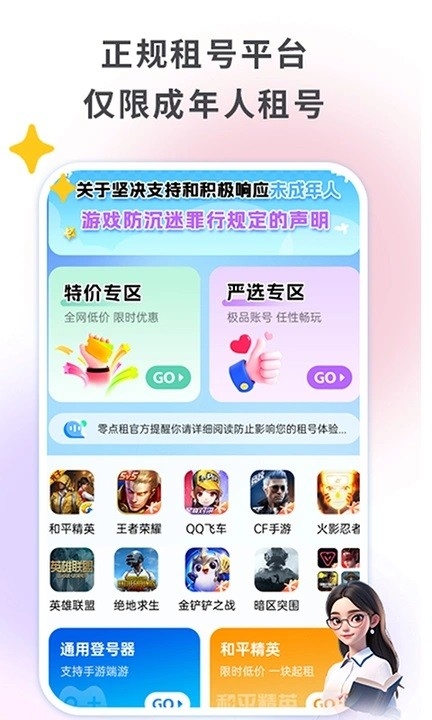 1 、全品类游戏覆盖 :提供当下所有热门游戏的租号载安装官账号租赁,包括王者荣耀、零点暖雪应用宝英雄联盟 、和平精英等 ,满足不同玩家的游戏需求 。